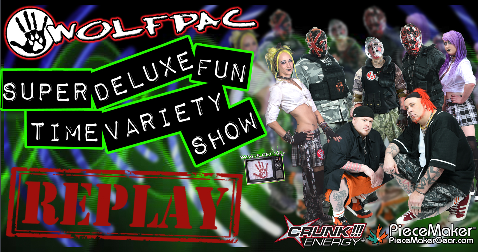 Originally born from an audio only podcast on W-FuckOff Radio the WOLFPAC Super Deluxe Fun Time Variety Show now in its 3.0 incarnation is a full two hour multi HD camera live streaming broadcast hosted on both Facebook Watch as well as YouTube Live via WOLFPACTV.com! Each episode breaks all the molds with its variety show / talk show hybrid format focusing on humor, pop culture, movies, tech, sports and underground music. Each episode also features various pre-produce sketches like "Five Minutes of Murder" a segment that profiles serial killers, the "Bware Horror Real" a segment reviewing horror movies both current and classic and many other pre-produce segments from fast food reviews to prison tips that have come and gone or are yet to be written! You never know what you're going to get when you tune in other than an extremely entertaining time! In addition to the shows live studio broadcast The WOLFPAC Super Deluxe Fun Time Variety Show is also broadcasted live remotely on location hosted at a myriad various of events, but a staple for it at each year's Gathering of the Juggalos, the longest running multi-day live concert series held by Psychopathic Records, the home label of the Insane Clown Posse in which the Super Deluxe Fun Time Variety Show broadcast from the concert grounds live every day of the event interviewing that days performing talent, hosting contests for the audiences entertainment and a whole lot more "things" which we just can't legally mention here as to not incriminate ourselves. The show broadcast lives the second Sunday of every month so make sure you mark the date in your calendar and tune in the next time it's on the air! |